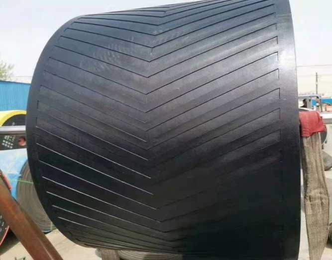花紋輸送帶主要是由上工作面(上覆蓋膠),下工作面(下覆蓋膠),內(nèi)部帶芯,以及花紋組成?;y主要在上工作面上,下工作面依舊是平整的運(yùn)輸平面。