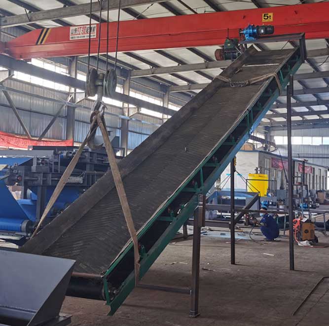 輸送帶工作面是由橫向排列的一根根滾動(dòng)軸構(gòu)成的,軸上有盤(pán)子,細(xì)粒物料就從滾軸或盤(pán)子間的縫隙通過(guò)。大塊物料由滾軸帶動(dòng)向一端移動(dòng)并從末端排出。選礦廠(chǎng)一般很少用這種篩子。