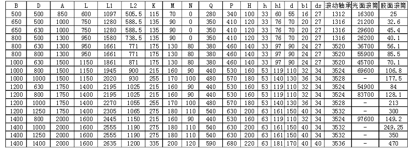 膠面改向滾筒技術參數(shù)
